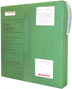Lead-Free Stick On Wheel Weights. Steel Strips in Rolls -- Coated. 1/4 oz. Low profile. 0.25 ounce increments. 1,250 increments per roll. 20 lbs per roll.